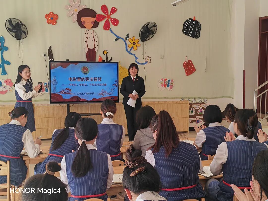 作为辖区中小学法治副校长的主力军,玉泉区人民检察院始终落实“谁执法谁普法”责任,此次集中普法覆盖多所学校,惠及千余名师生,既传递了宪法精神与法律温度,更强化了师生法治观念。下一步,本院将持续深化检校合作,丰富普法形式,以“检察蓝”守护“青春绿”,引导青少年尊法、学法、守法、用法,助力平安校园建设,让法治阳光照亮成长之路。