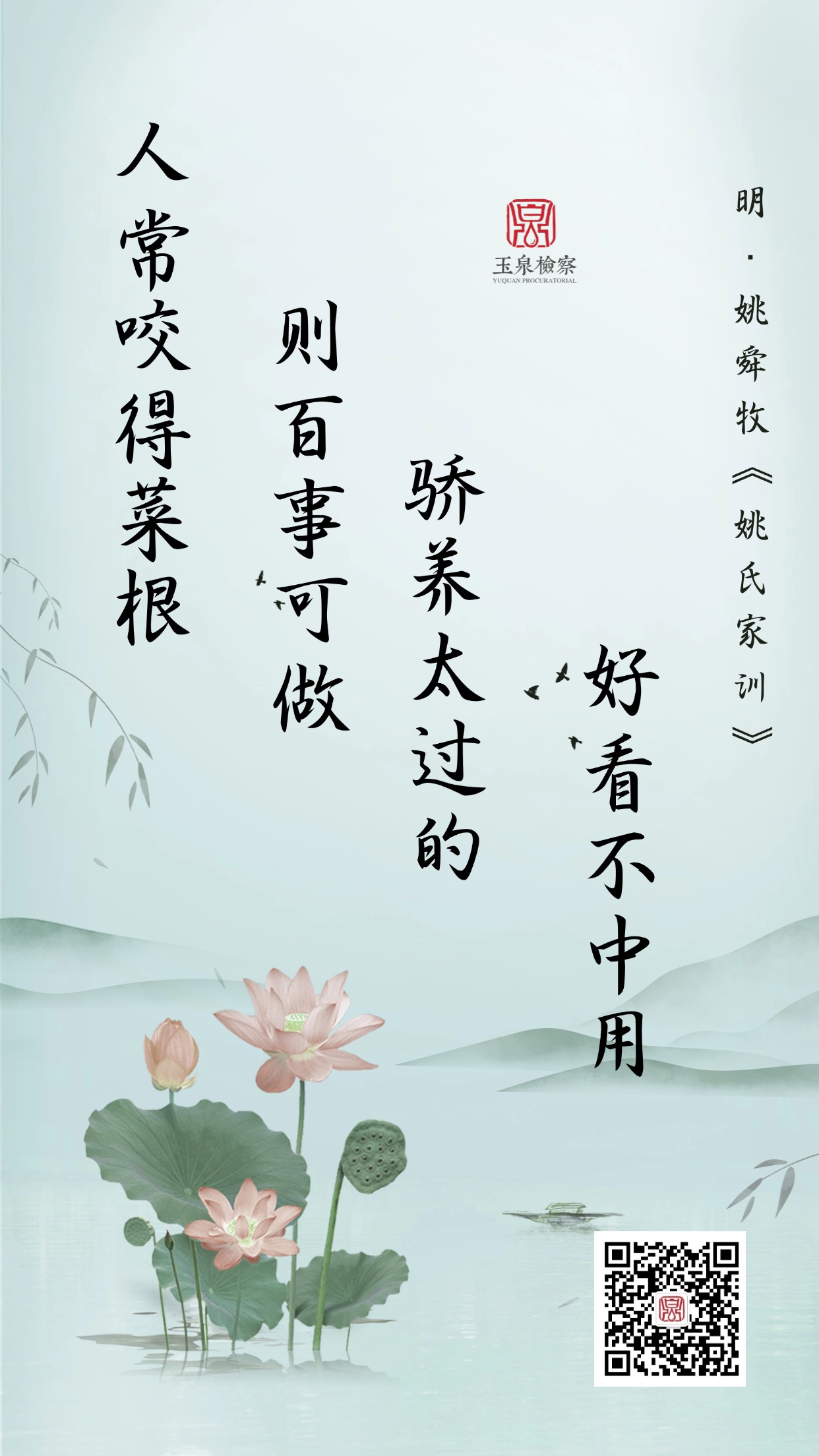 文化而润其内,养德以固其本。玉泉区人民检察院一直把廉洁文化建设纳入党风廉政建设和反腐败工作布局,不断探索廉洁教育新思路、新举措,增强检察廉洁文化的影响力和渗透力。玉泉区人民检察院微信公众号平台策划推出【“廉”动玉检】专栏,讲述中华民族历史长河中的清廉官吏典型和党的百年奋斗史中老一辈革命家、革命先烈的廉洁故事,教育引导广大党员检察人员从中汲取清廉力量,牢固树立廉洁自律意识,持续营造风清气正的良好氛围。