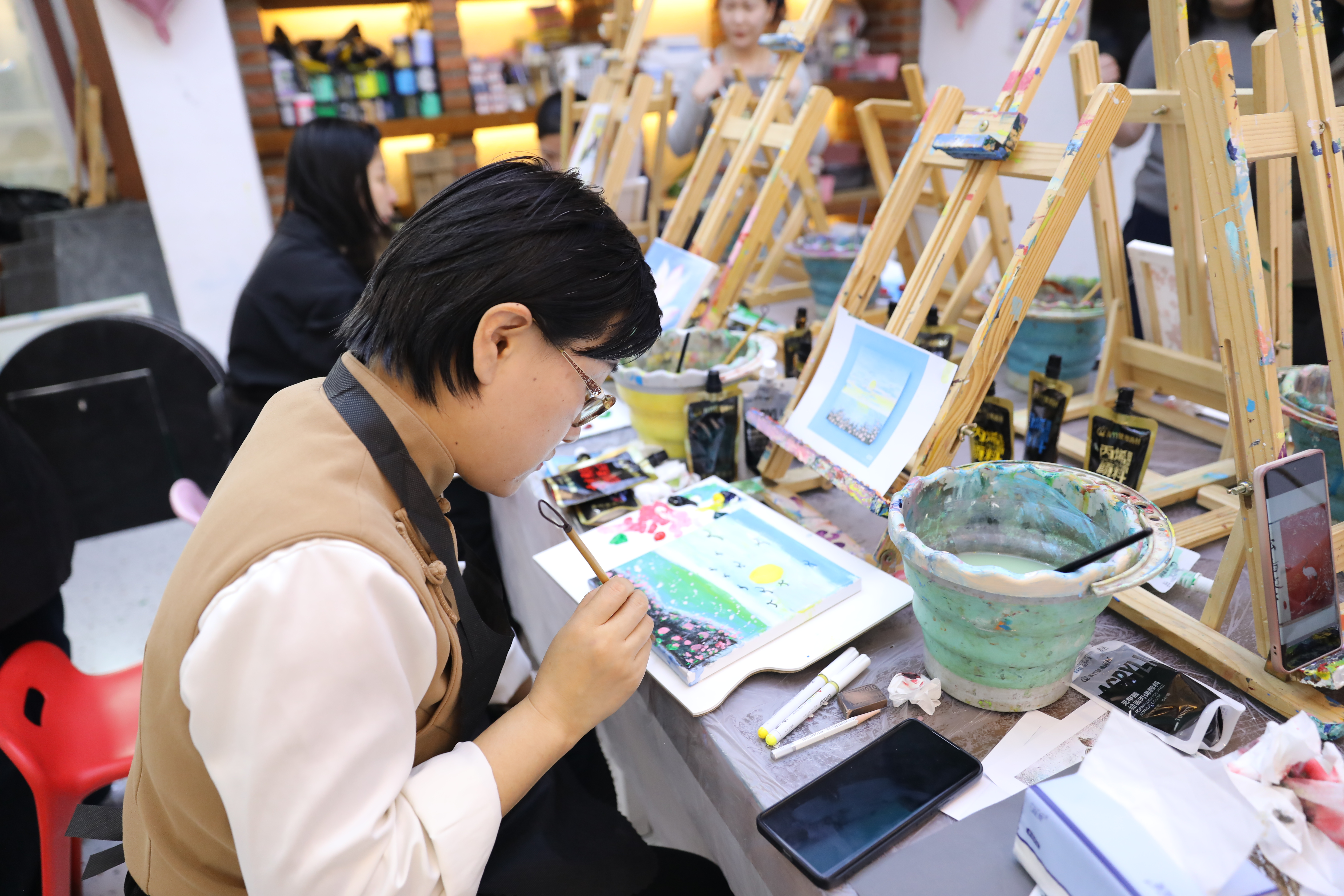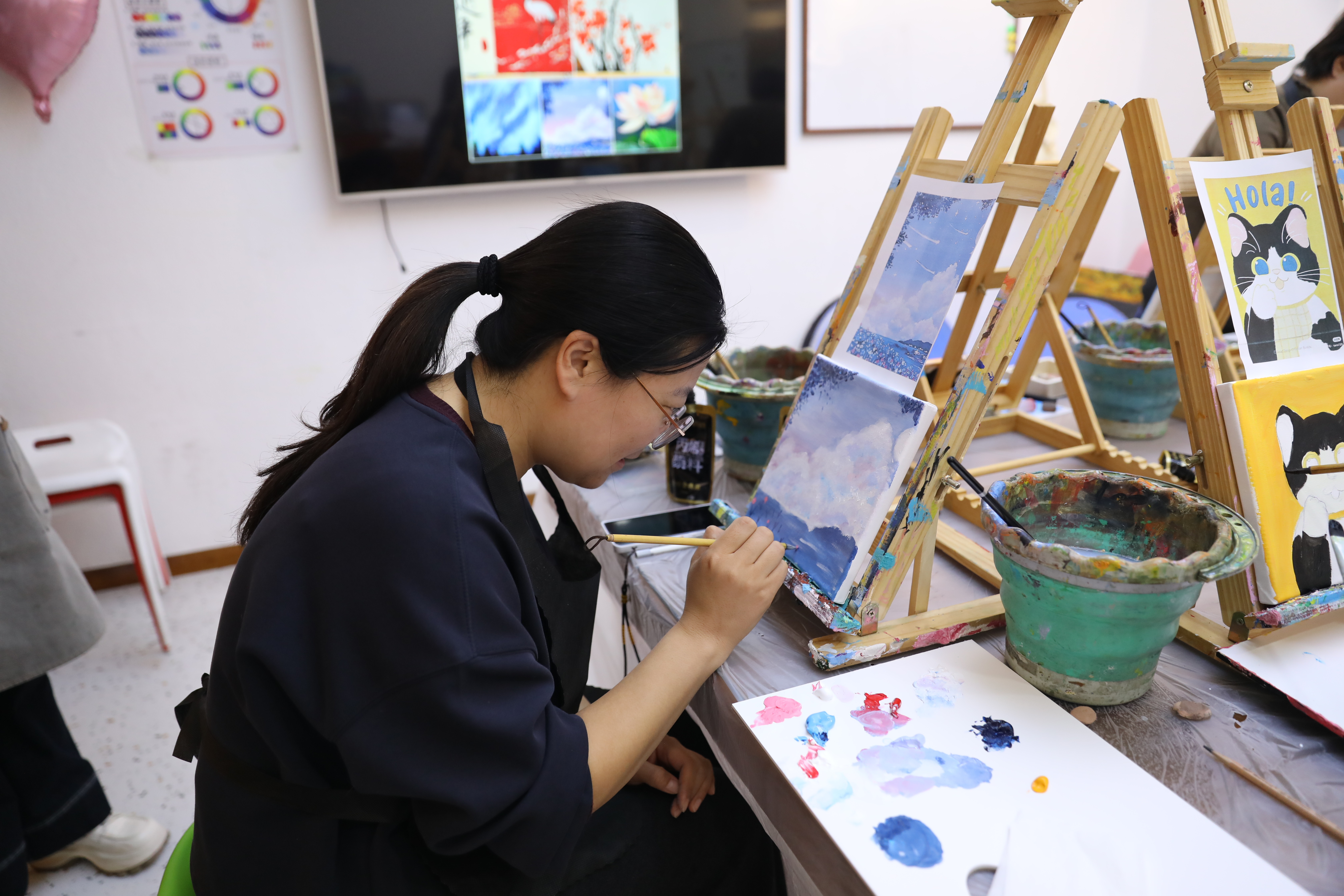 人间三月,草木蔓发,油画创作现场温馨雅致、氛围热烈。平日里,她们是手握法律文书、笔耕案卷的检察人,以专业与坚守诠释法治初心,在办案一线绽放巾帼力量;此刻,她们暂别案牍的繁忙,执起画笔,沉浸式参与油画创作体验,赴这场与艺术的温柔邂逅。在专业老师的悉心指导下,调一抹春色,绘一纸美好,浓淡相宜的色彩在画布间晕染,细腻灵动的笔触在光影下流转,将对生活的热爱、对法治的信仰都藏进一幅幅匠心之作里,大家在艺术创作中舒缓压力、陶冶情操,这份刚柔并济的美好,是检察人独有的风采。