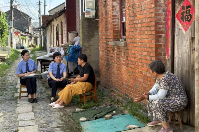 江苏省扬州市广陵区检察院积极落实最高人民检察院部署的大运河沿线历史文化名城、名镇、名村保护公益诉讼监督活动,近日,该院检察官来到大运河沿线的湾头古镇向附近村民介绍公益诉讼检察职能,了解公益诉讼案件线索。本报通讯员李芸 蒋烨摄