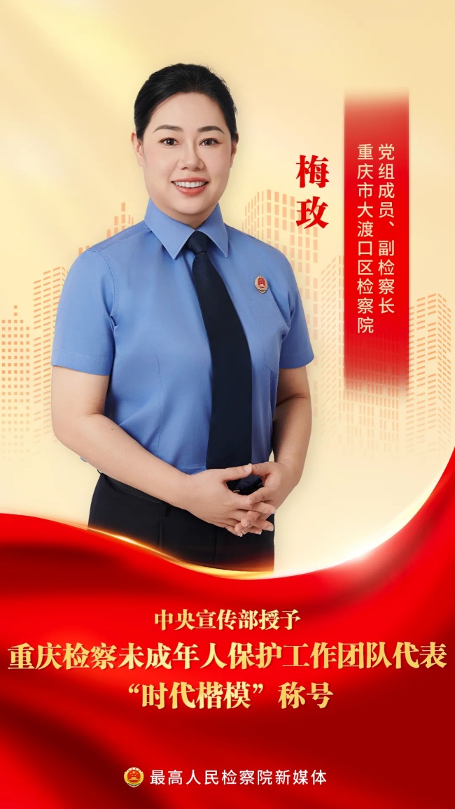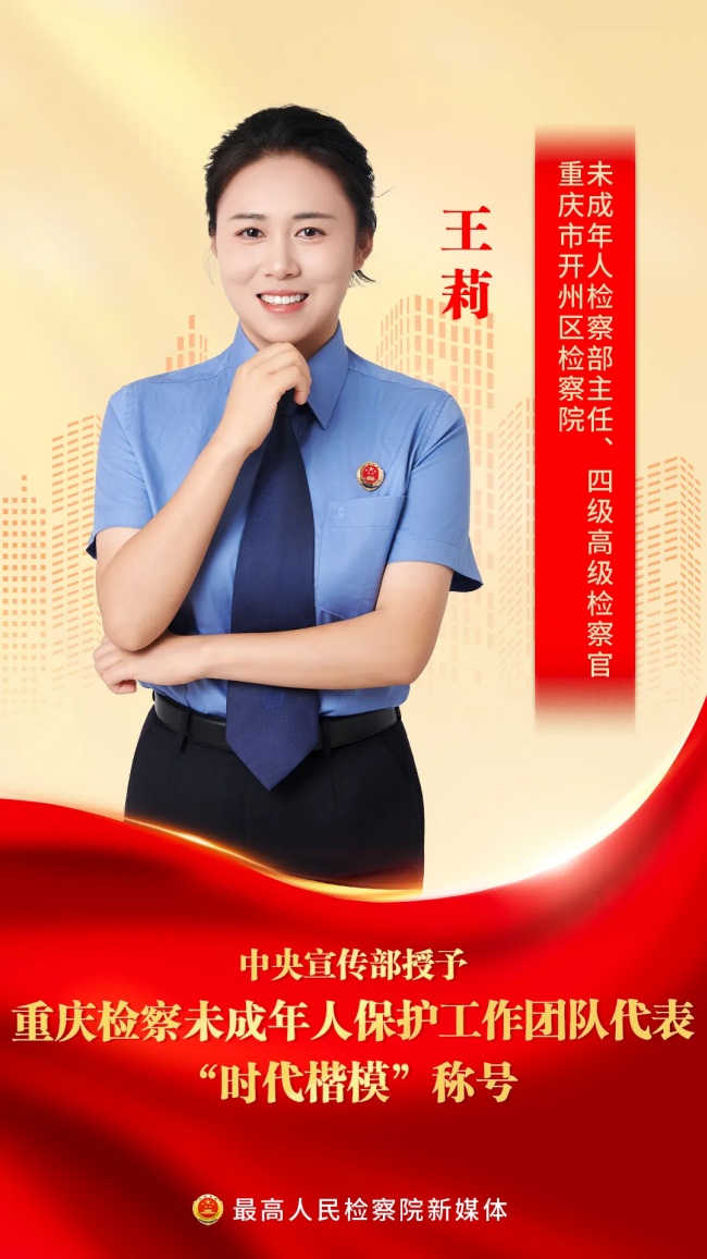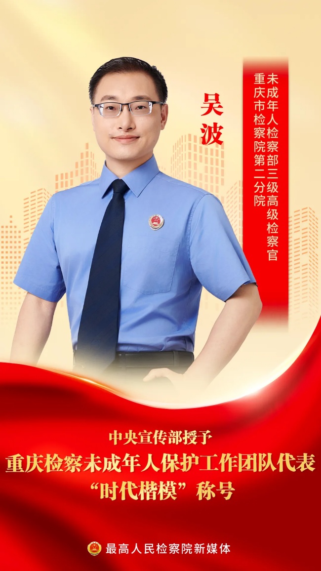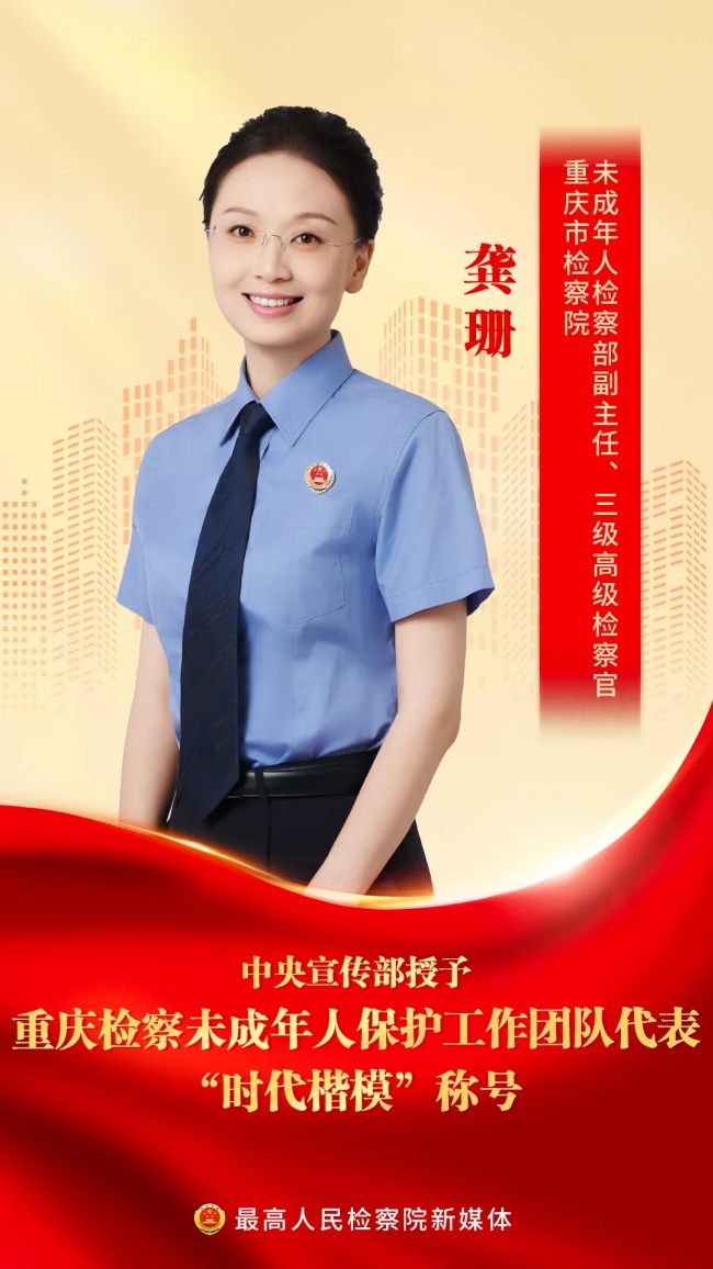 中央宣传部授予重庆检察未成年人保护工作团队代表“时代楷模”称号,褒扬他们是“德法相伴、倾情守护未成年人健康成长的典范”,号召全社会向他们学习。